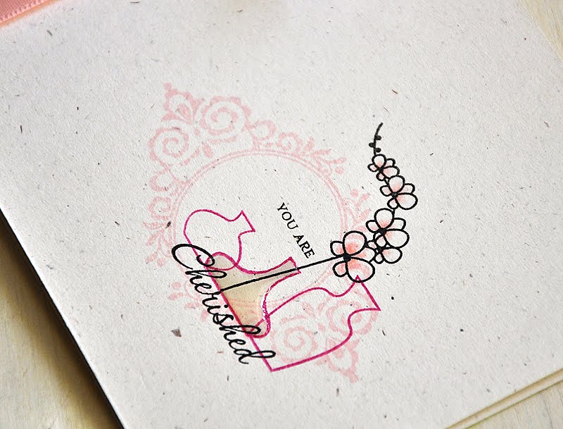 Next up, a more softer look. One of my favorite ways to create a single layer card is to layer stamped images and create a unique and interesting focal image.
